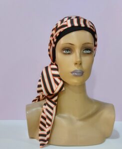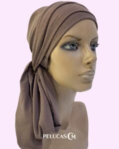 Ata detrás, y simula ser un pañuelo. Talle unico autoajustable,