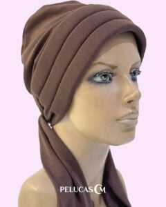 No está fija al turbante, lo que permite usarla tambien con distintos turbantes pañuelos gorros y sombreros